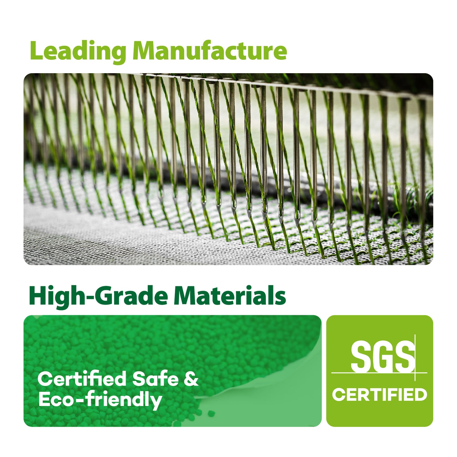 - Synthetic grasses to create a real and natural appearance