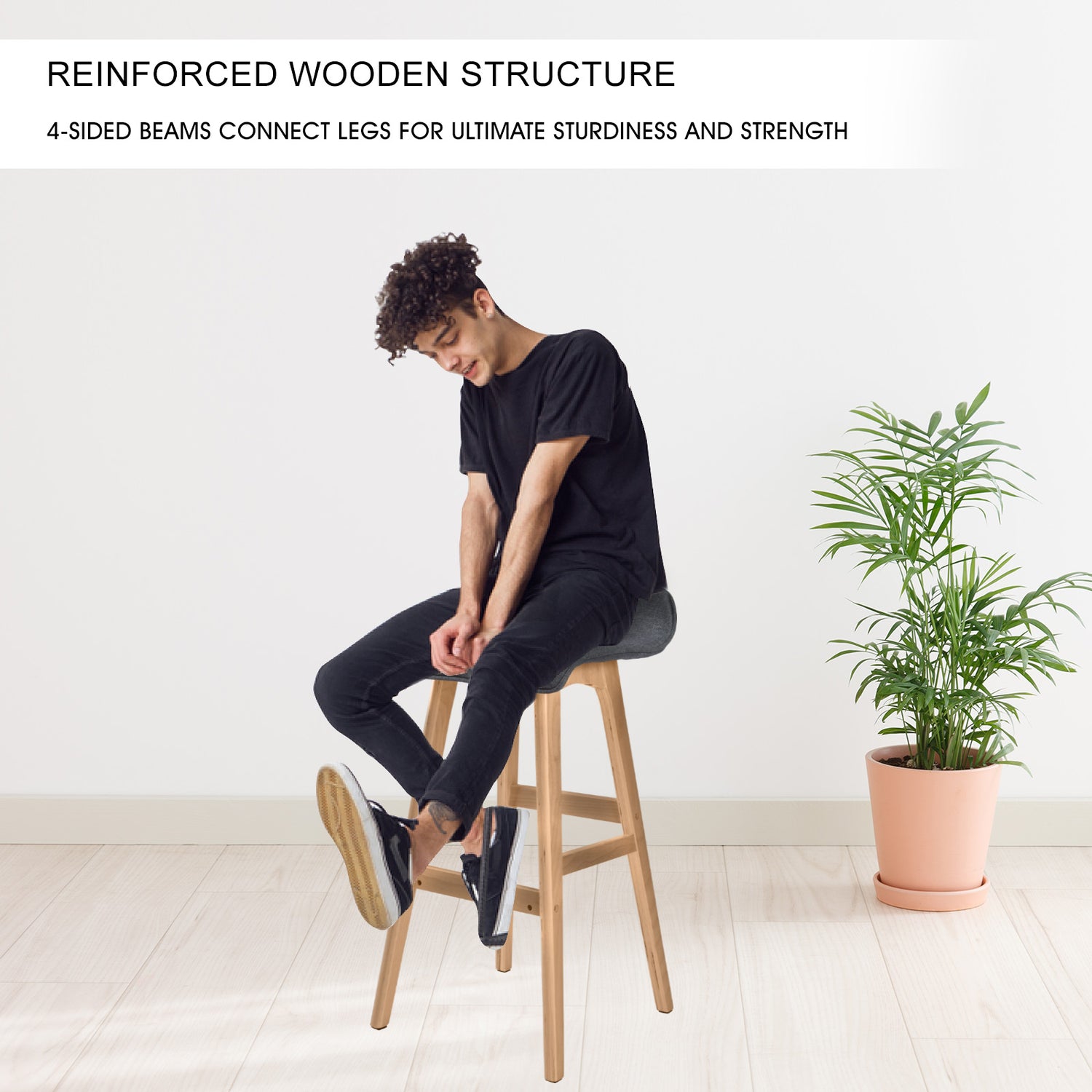 Designed for safety and durability, each stool features solid plywood legs with a squared footrest and anti-slip protectors to minimise scratches on wooden and tile floors. The seat is upholstered for comfort and is available in either fabric or PU leather options, offering an easy-care surface with a refined look. Assembly is straightforward and quick—typically around 9 minutes—so you can enjoy extra seating without fuss.