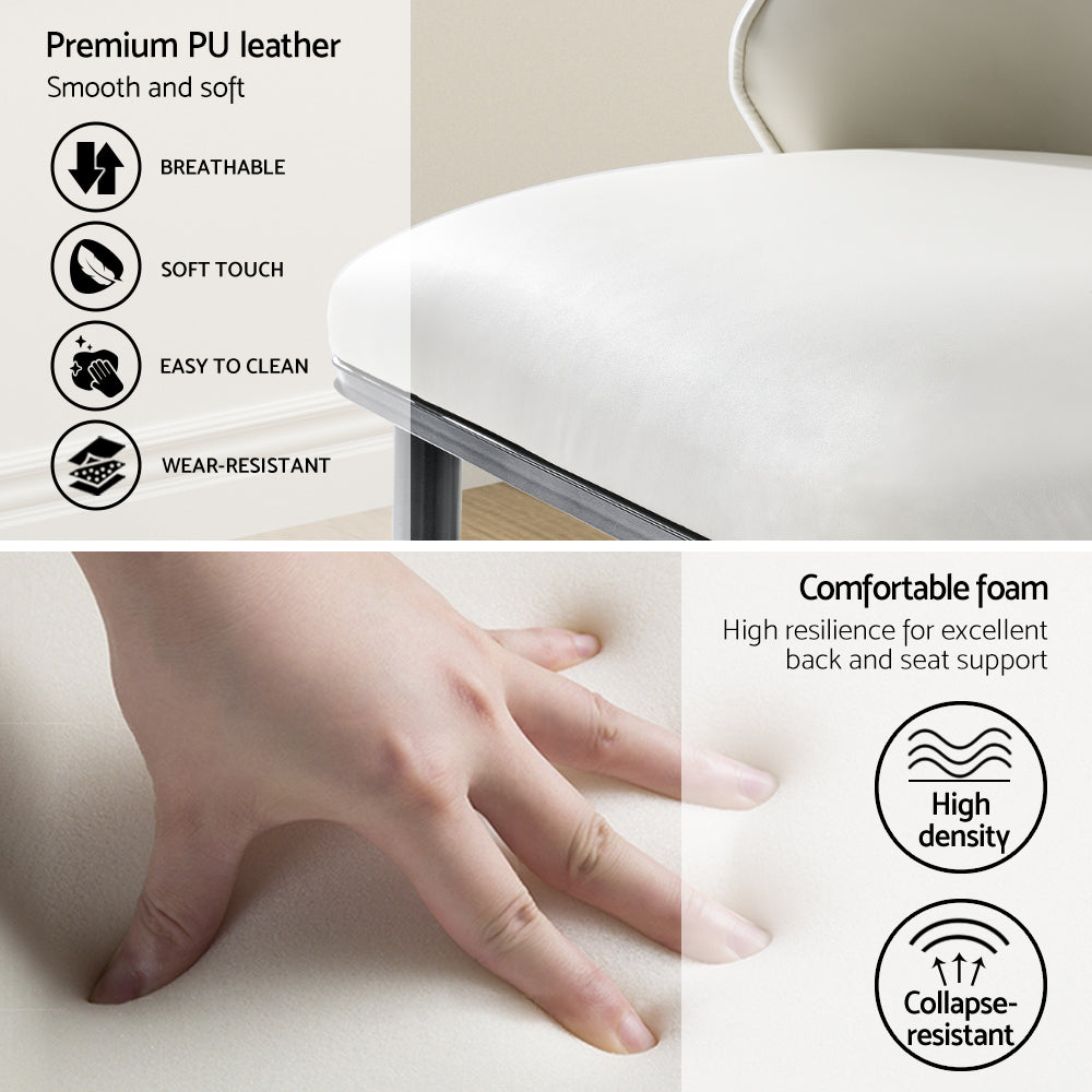 Crafted with a robust inner solid wood frame, the Artiss Dining Chairs guarantee lasting quality and exceptional durability. The plush PU leather seats, paired with contoured backrests, provide remarkable comfort and support, allowing you to enjoy gatherings, meals, and conversations without compromise.