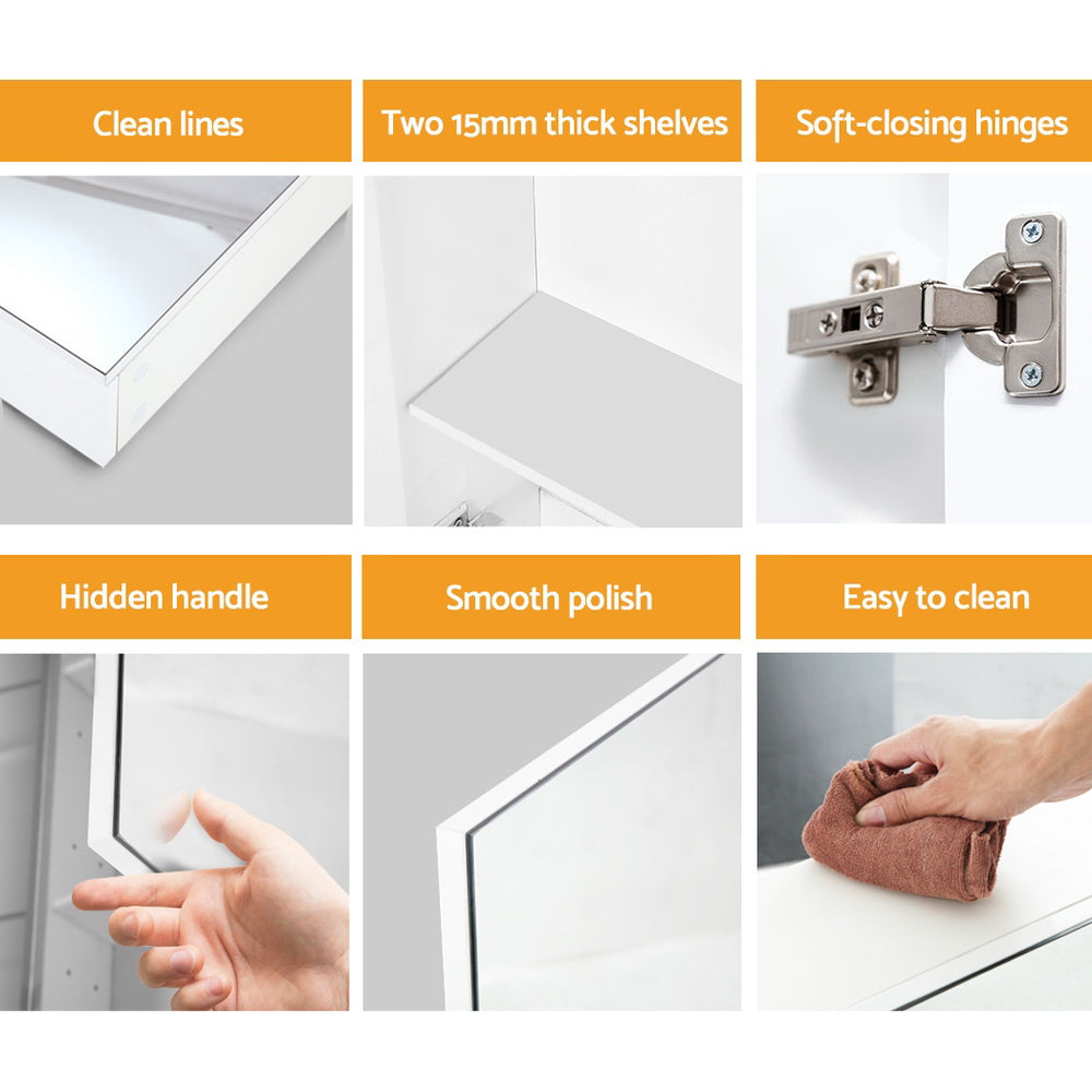 The twin soft-closing doors reveal ample storage space, equipped with adjustable shelves designed to accommodate your toiletries, medicines, and other essentials effortlessly. Perfect for storing toiletries, medicines, shavers, and more.