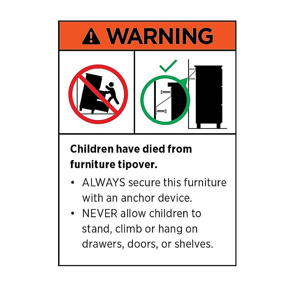 Please ensure proper installation by securing this furniture with an anchor device to prevent accidents, especially in homes with children. Returns are accepted under specific conditions as outlined in our policy.