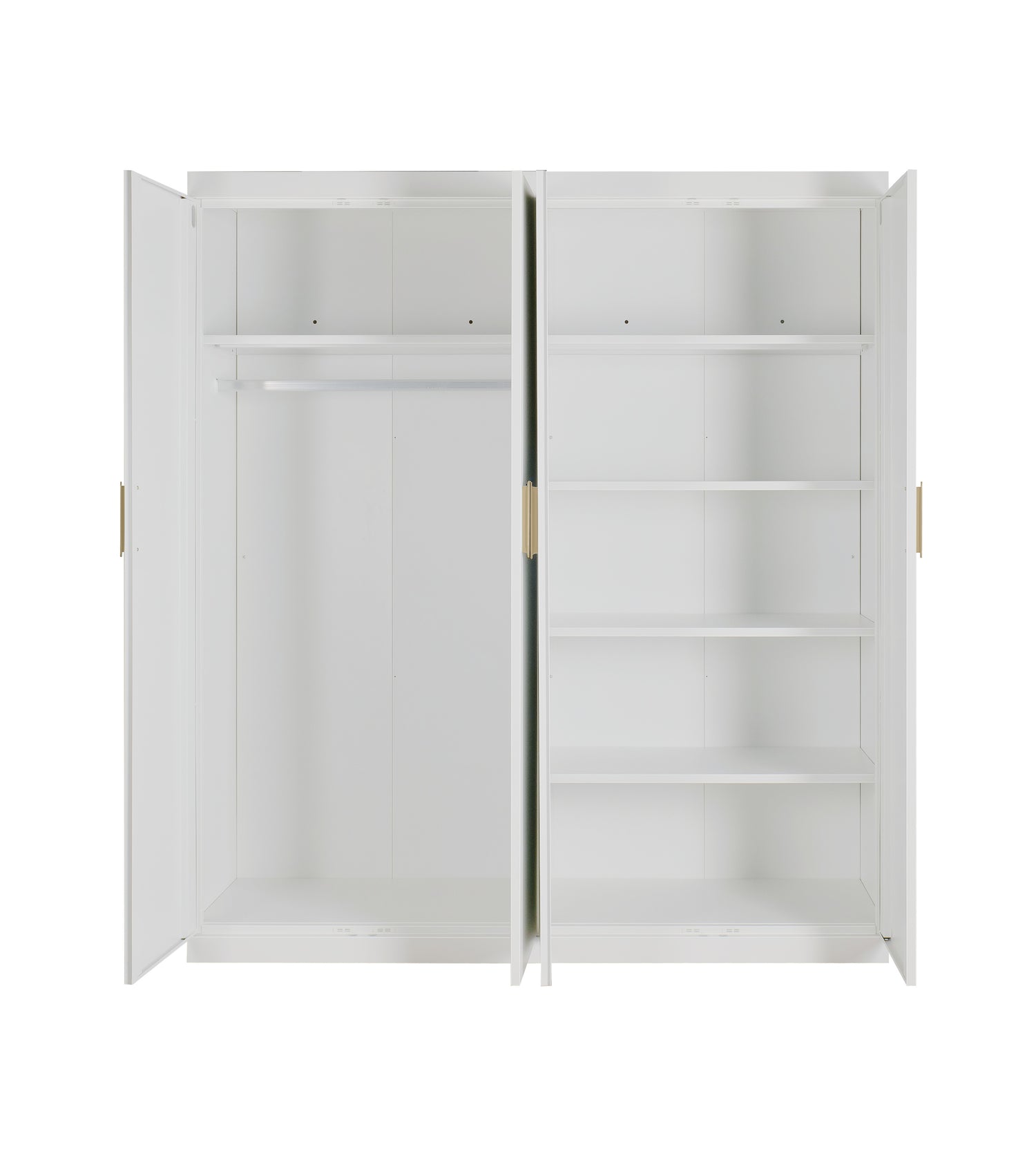 Elegant White Gloss 4 Door Wardrobe with Gold Handles