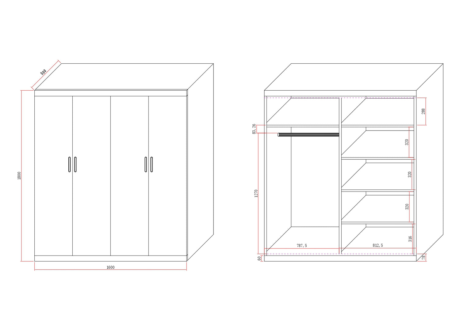 Measuring 160 x 50 x 180 cm, with each door measuring 39.8 x 168 cm, this wardrobe is an excellent choice for contemporary bedrooms seeking ample storage solutions.