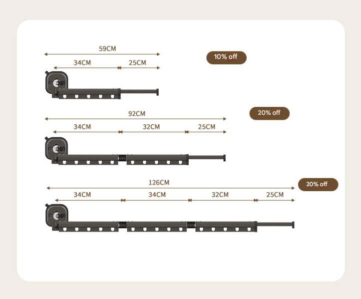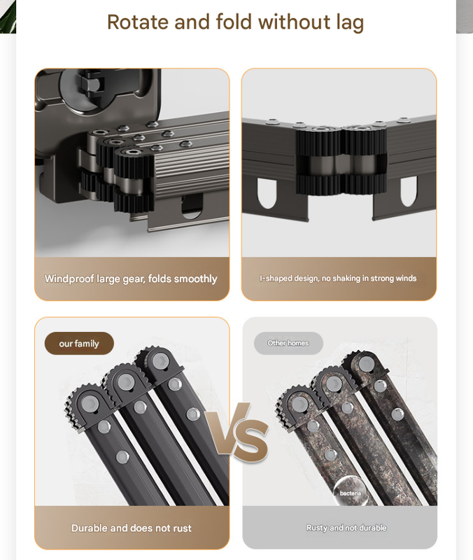 This drying rack is constructed with high-quality aluminum alloy, ensuring durability and longevity. Its dimensions expand to 126 cm when fully extended, making it effective for various drying tasks.