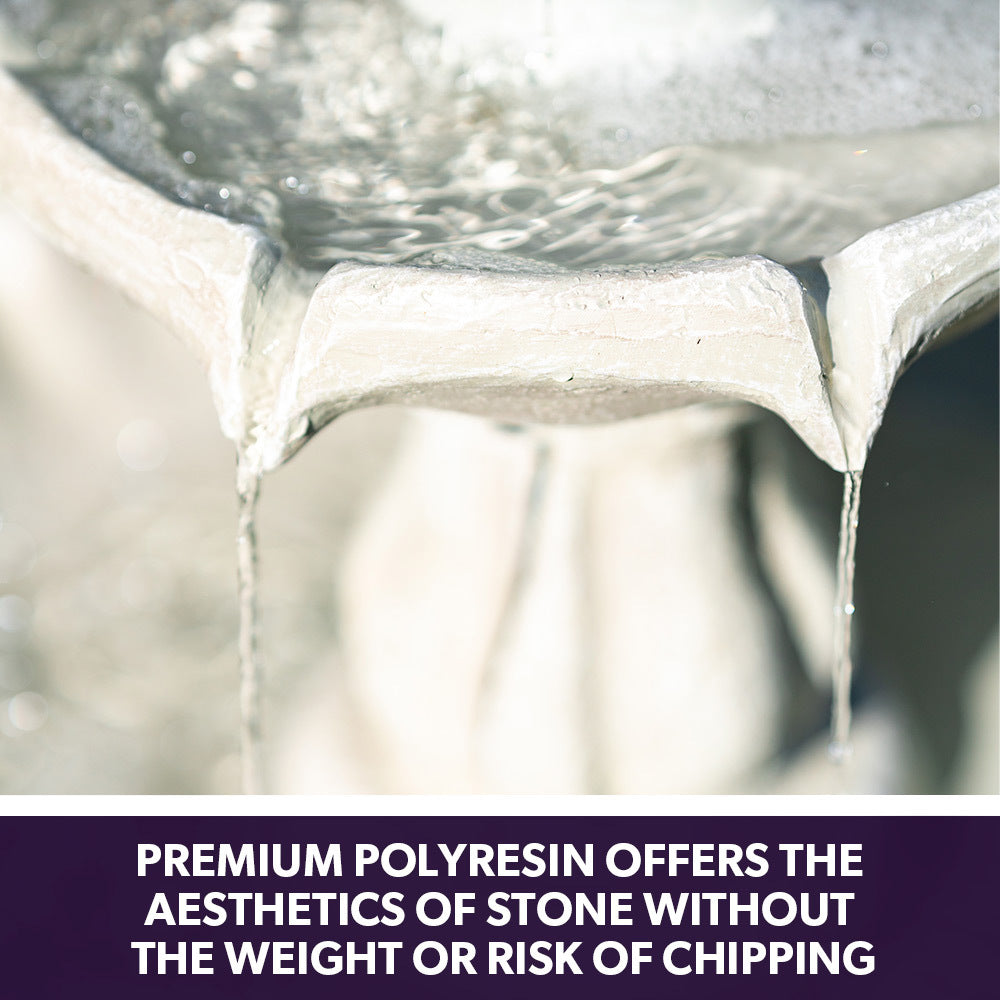 Crafted from premium Polyresin, this bird bath mimics the beauty of stone while being lightweight and resistant to chipping. Its freestanding design allows for quick assembly in under five minutes, ensuring you can enjoy its beauty without hassle. With a capacity of 10 liters, the fountain remains stable and securely positioned.