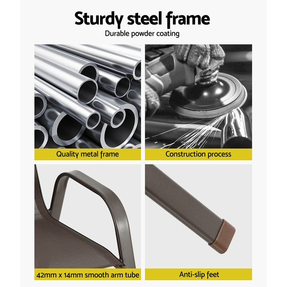 Whether you're hosting an intimate outdoor dinner party or a backyard barbeque, this outdoor stackable chair set creates a stylish, comfortable setting that will wow your guests. Stackable for convenient storage, the chairs are built for years of enjoyment from premium textilene fabric and a sturdy steel frame finished with durable powder coating. Weather-resistant materials and anti-slip feet make them ideal for patio, deck or indoor use, while a smooth surface ensures easy cleaning and low maintenance.