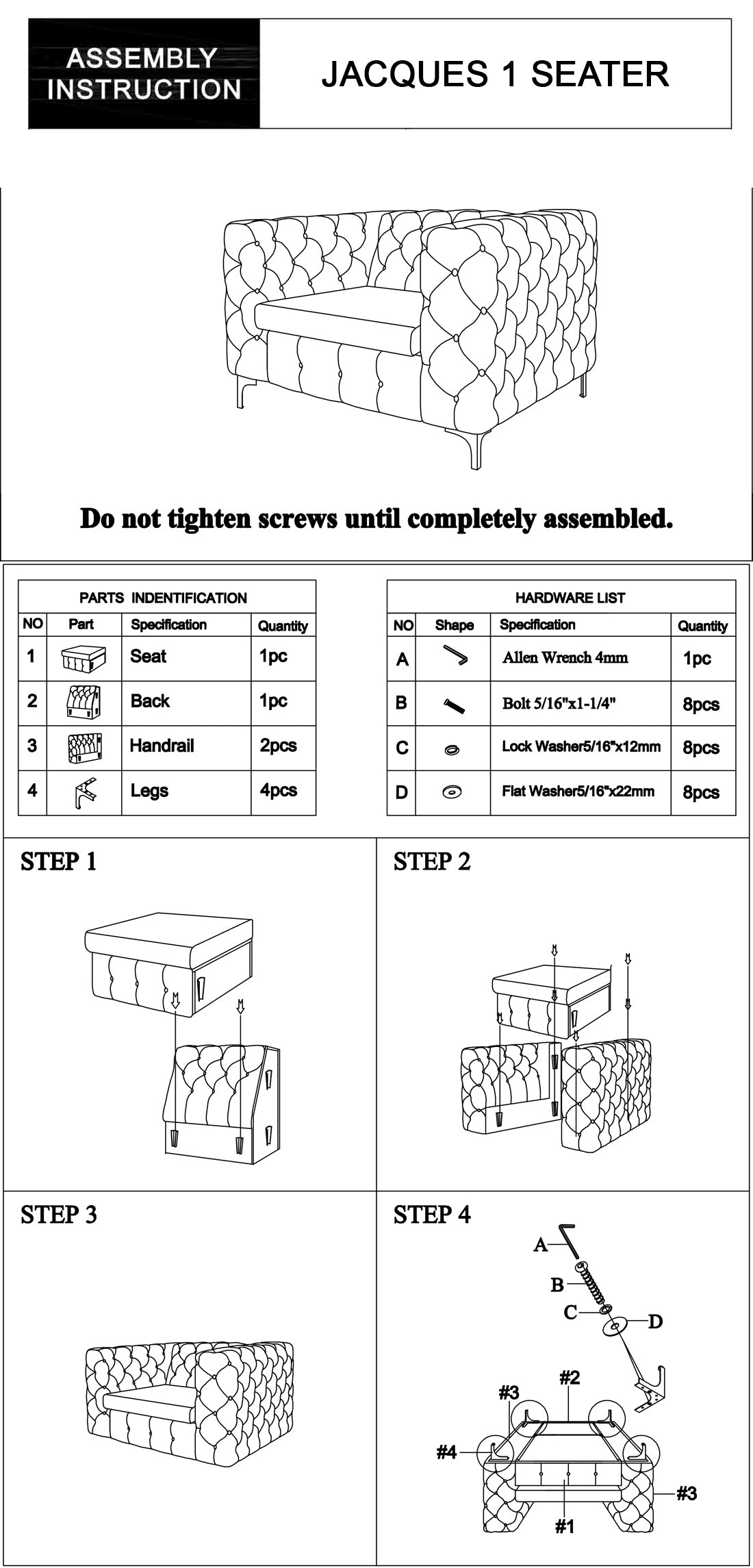 - Package Content: 1 x Jacques 1 Seater in Black Colour