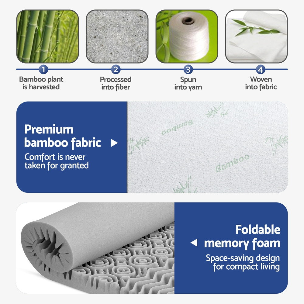 Experience elevated comfort with Giselle Bedding's 8cm graphite-infused memory foam mattress topper. Its 7-zone contoured surface with open cell structure improves airflow while the memory foam delivers lasting support across over 1000 contact points. Finished with a removable bamboo fabric cover and anti-skid base, it enhances breathability, pressure relief and motion control for a better night's sleep.