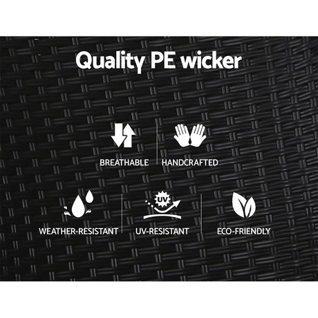 Gardeon Sun Lounge Setting Wicker Lounger Day Bed Patio Outdoor Furniture Black