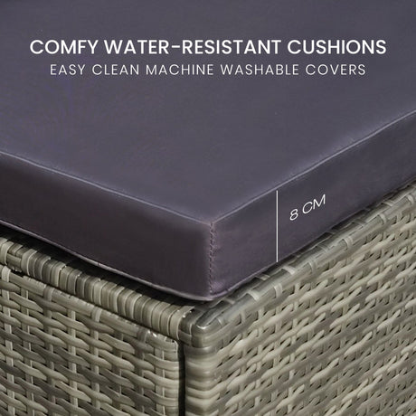 Gardeon Sun Lounge Setting Wicker Lounger Day Bed Outdoor Furniture Patio Grey