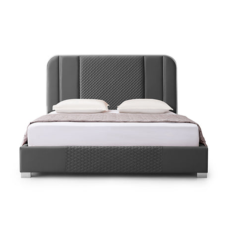 Halcyon Bed Frame Air Leather Padded Upholstery High Quality Slats Polished Stainless Steel Feet