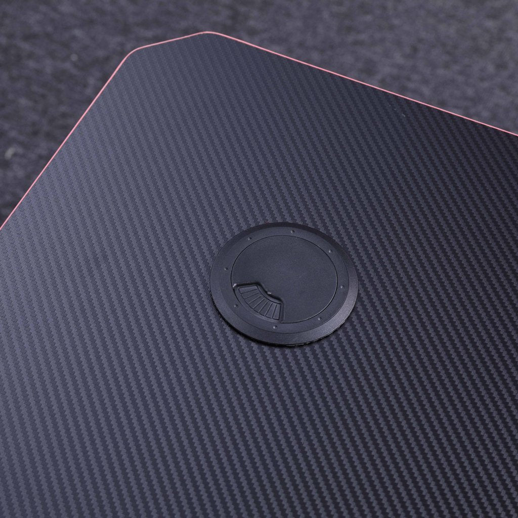 Our Gaming Desk features a spacious tabletop for ultimate gaming gear. Carbon fiber surface features with a smooth and gorgeous texture. The ergonomically contoured desktop allows a closer distance to the gaming screen. With its K-shaped legs, it provides an extremely steady construction which has a 100kg high bearing capacity. Reinforced braces, rounded edges and rubber floor protectors enhance the premium-quality details. Get your game on with a stylish, stable desk built for long sessions and solid performance.