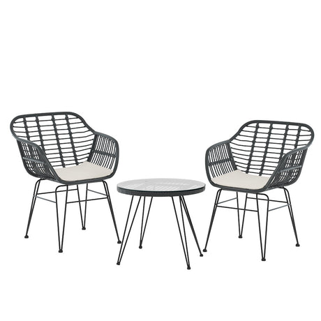 Gardeon 3PC Outdoor Furniture Bistro Set Lounge Setting Table Chairs Cushion Patio Grey