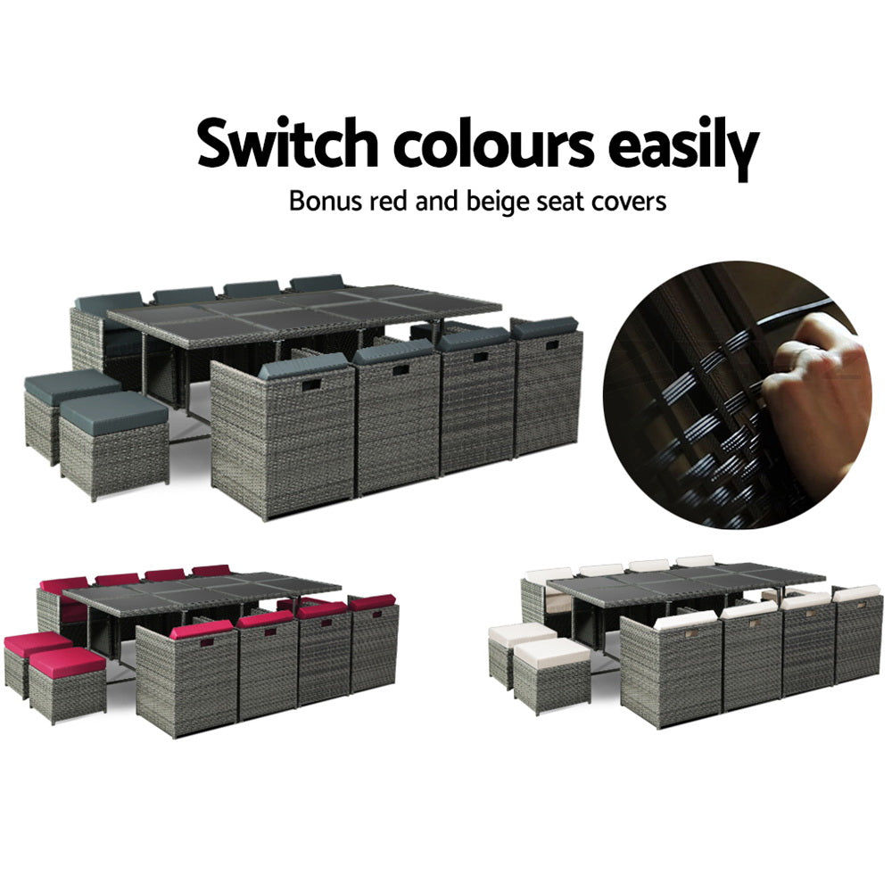Transform your outdoor space into an elegant dining area with the Gardeon Outdoor Dining Set. This sophisticated 13-piece wicker dining set is designed to accommodate up to 12 people, making it ideal for gatherings with family and friends. Whether it's summer barbecues or winter brunches, this versatile set will enhance your outdoor experience year-round.
